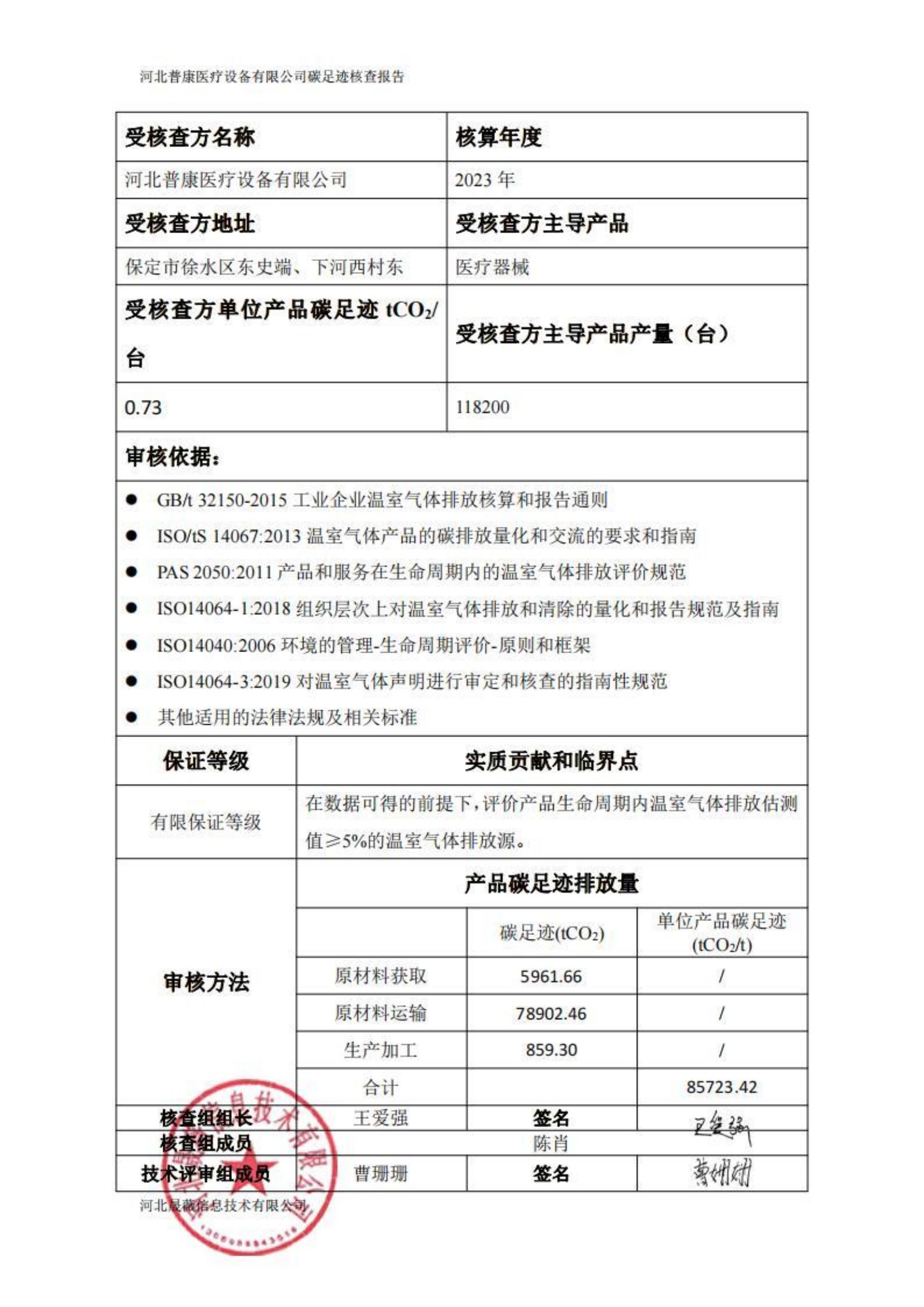 2023年產(chǎn)品碳足跡核查公示